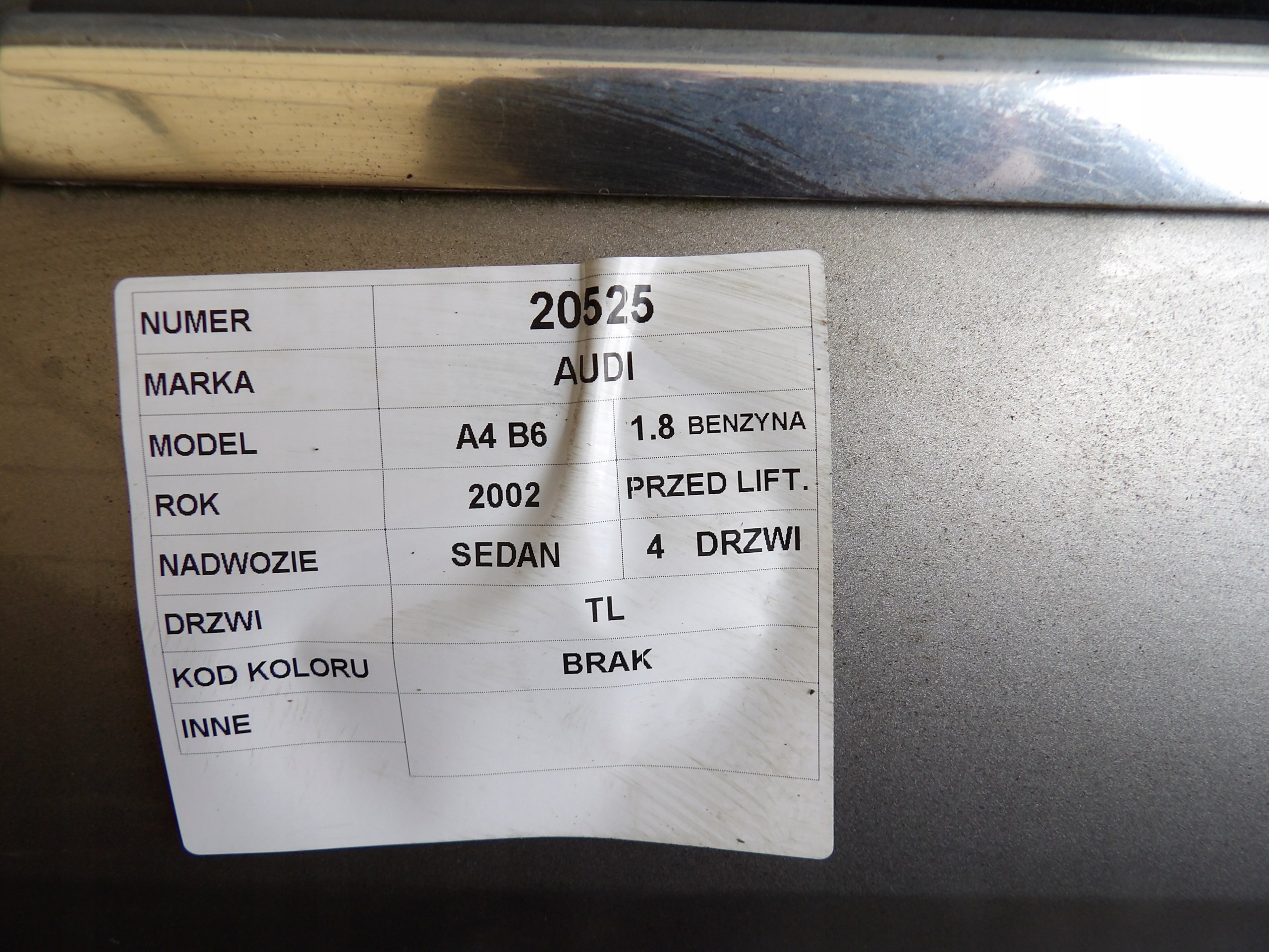 Audi A4 B6 drzwi tylne lewe sedan