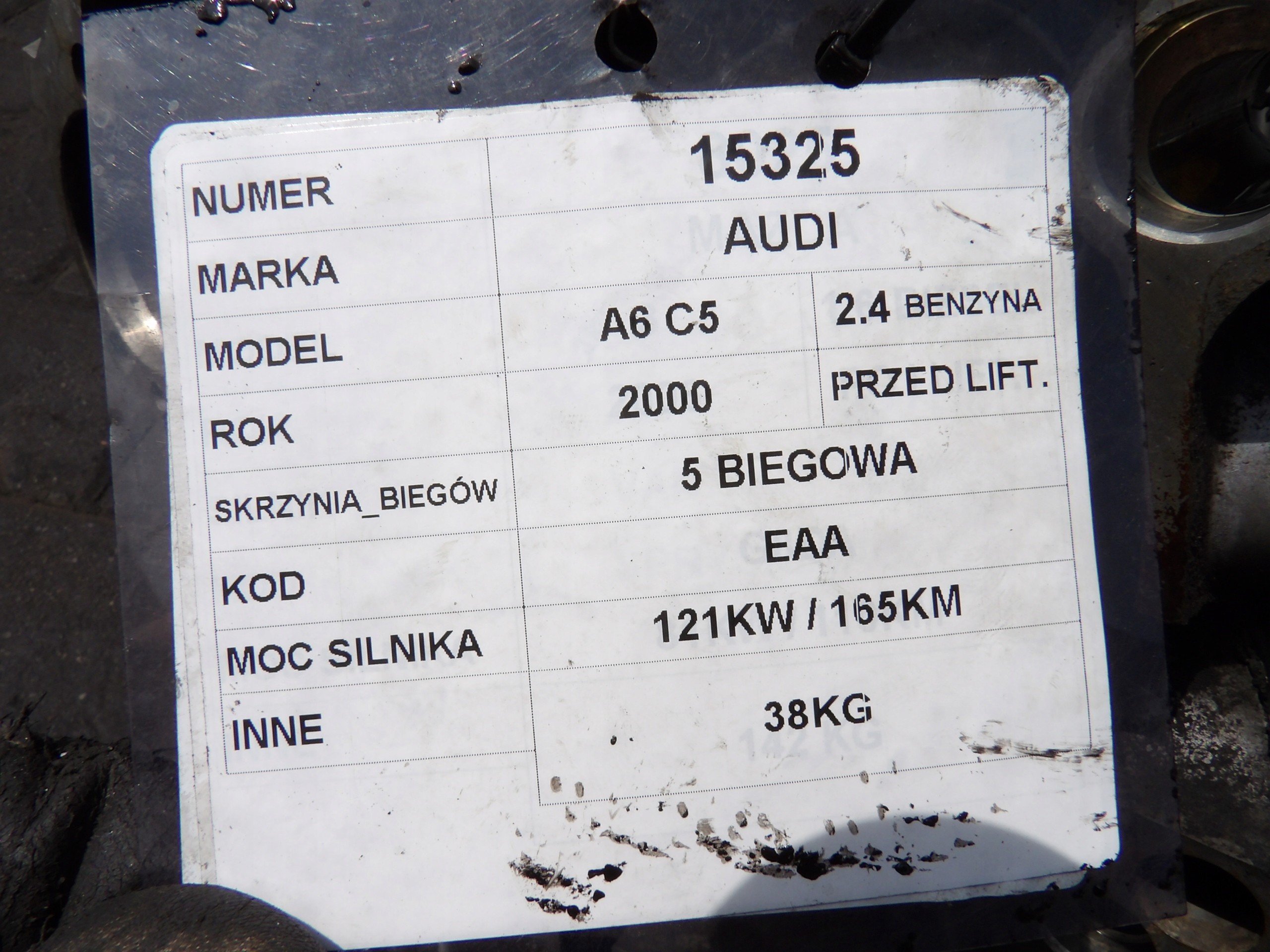 Audi A6 C5 2,4B 121KW 165KM skrzynia biegów EAA