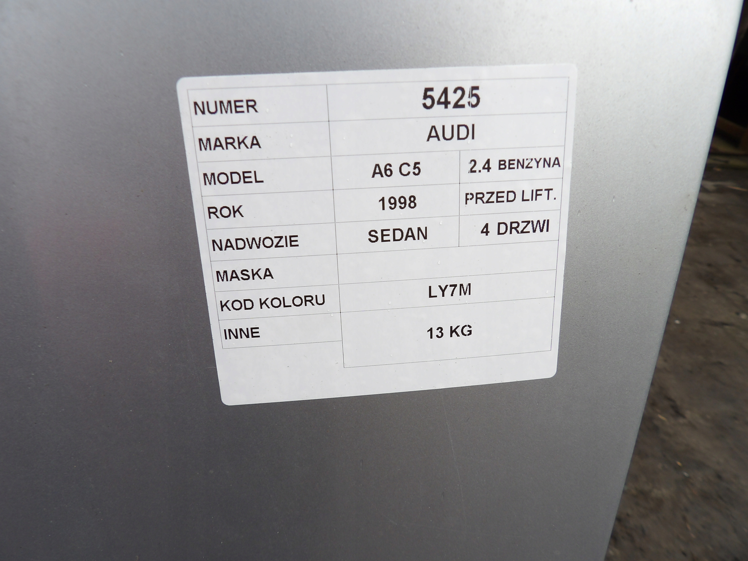 Audi A6 C5 maska lak. LY7M