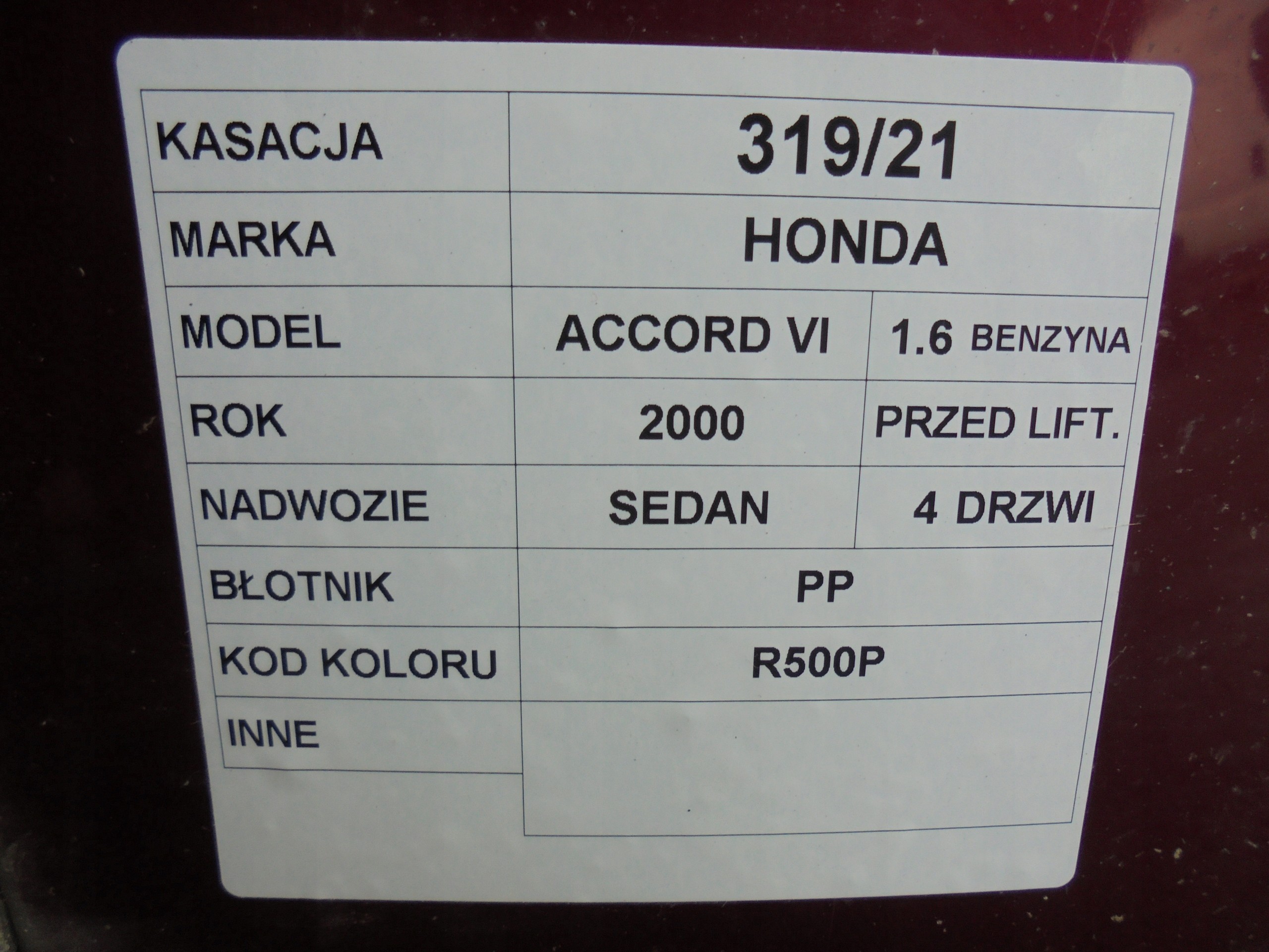 Błotnik PP Honda Accord VI R500P