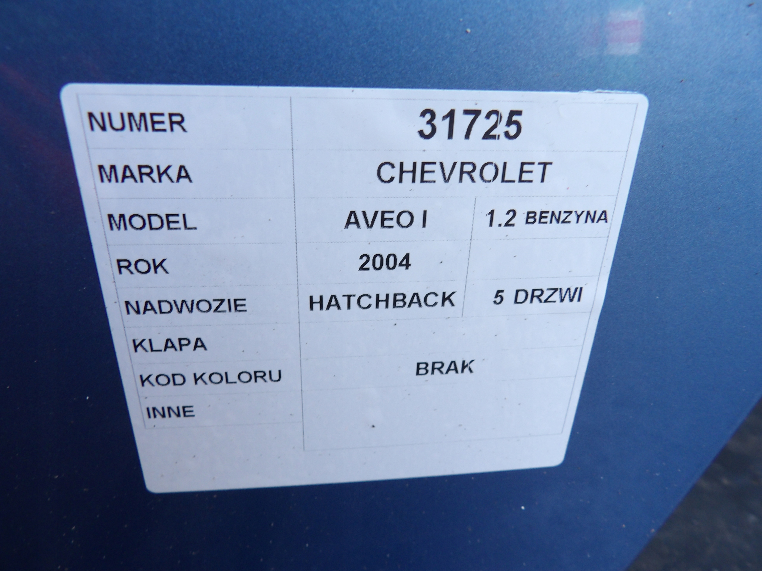 Chevrolet Aveo I klapa tylna HB 5D