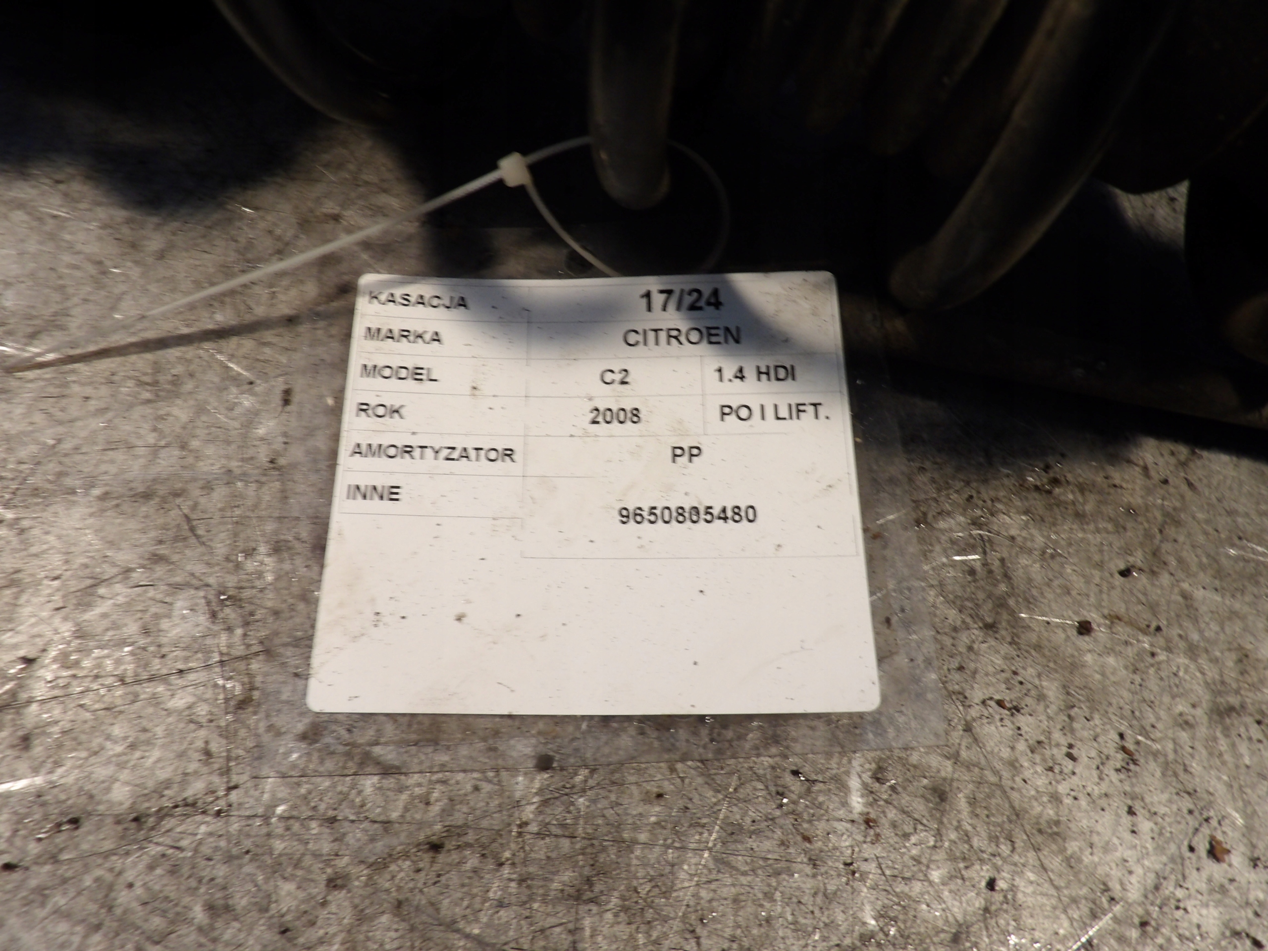 Citroen C2 amortyzator przedni prawy 9650805480