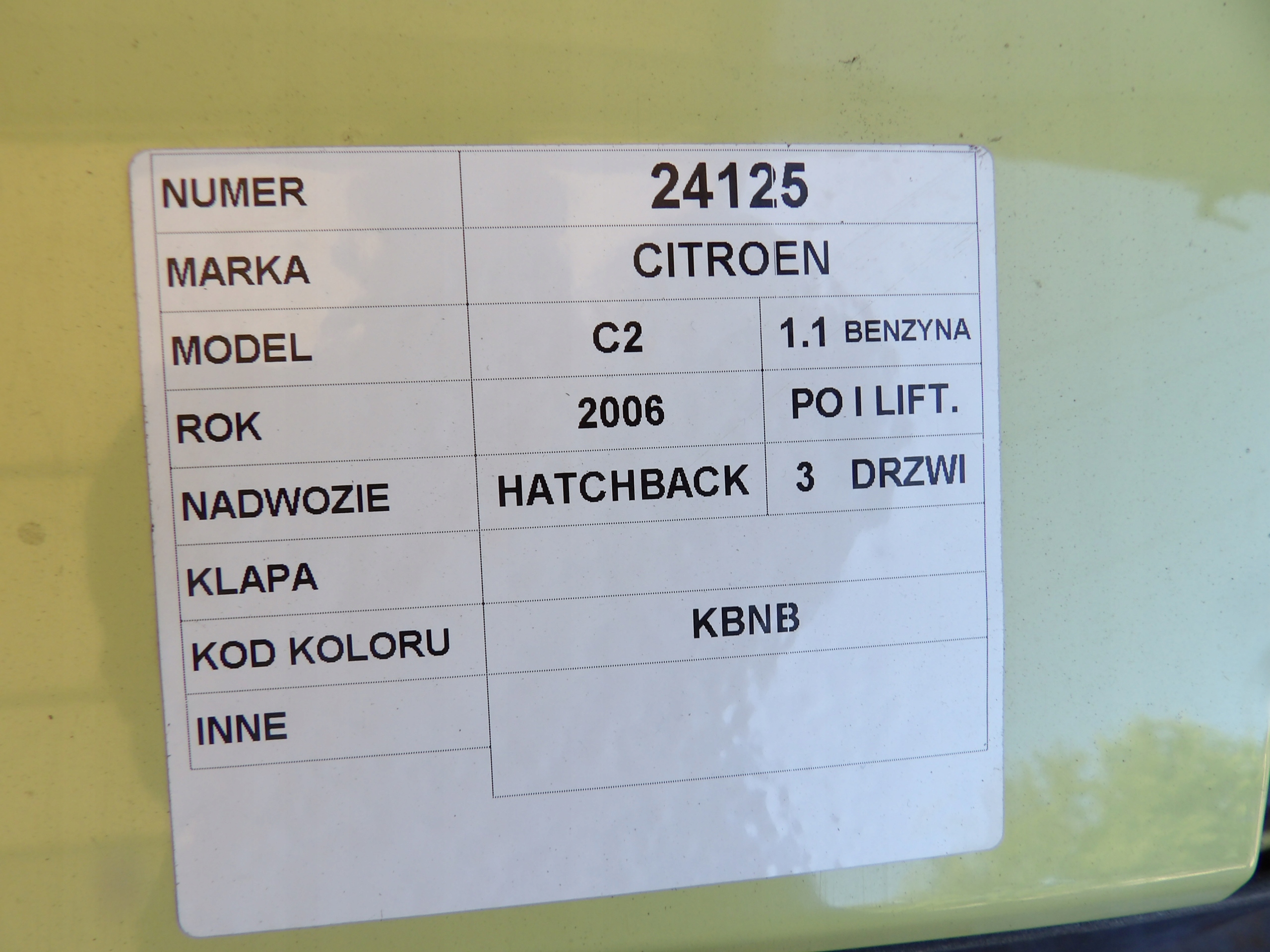 Citroen C2 klapa tylna lak. KBNB HB 3D lift