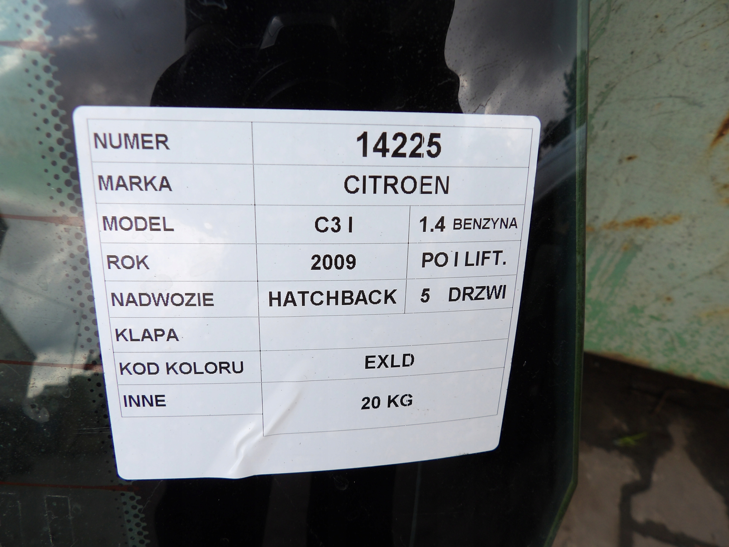 Citroen C3 I klapa tylna HB 5D lak. EXLD