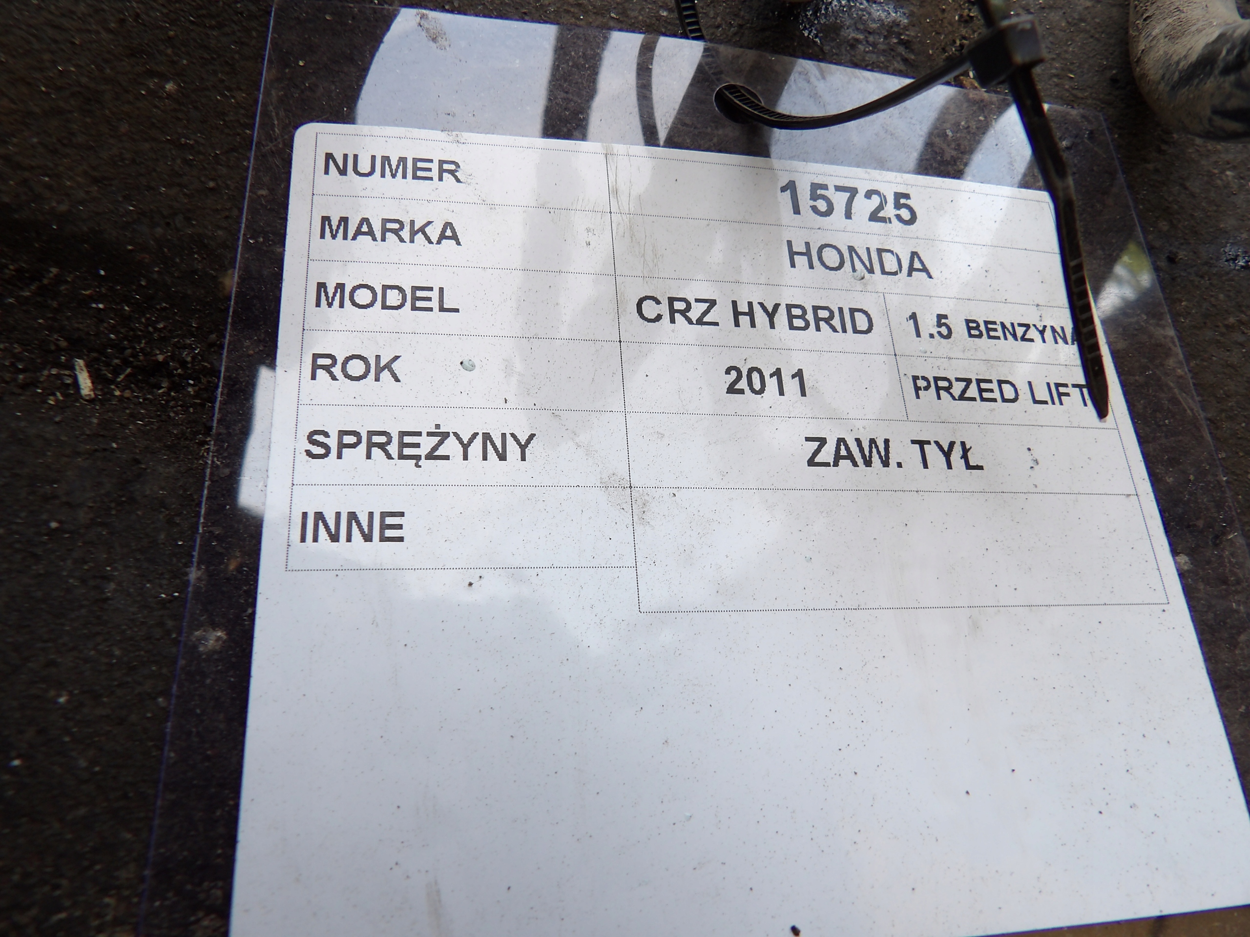 Honda CR-Z 1,5 Hybrid sprężyny tylne