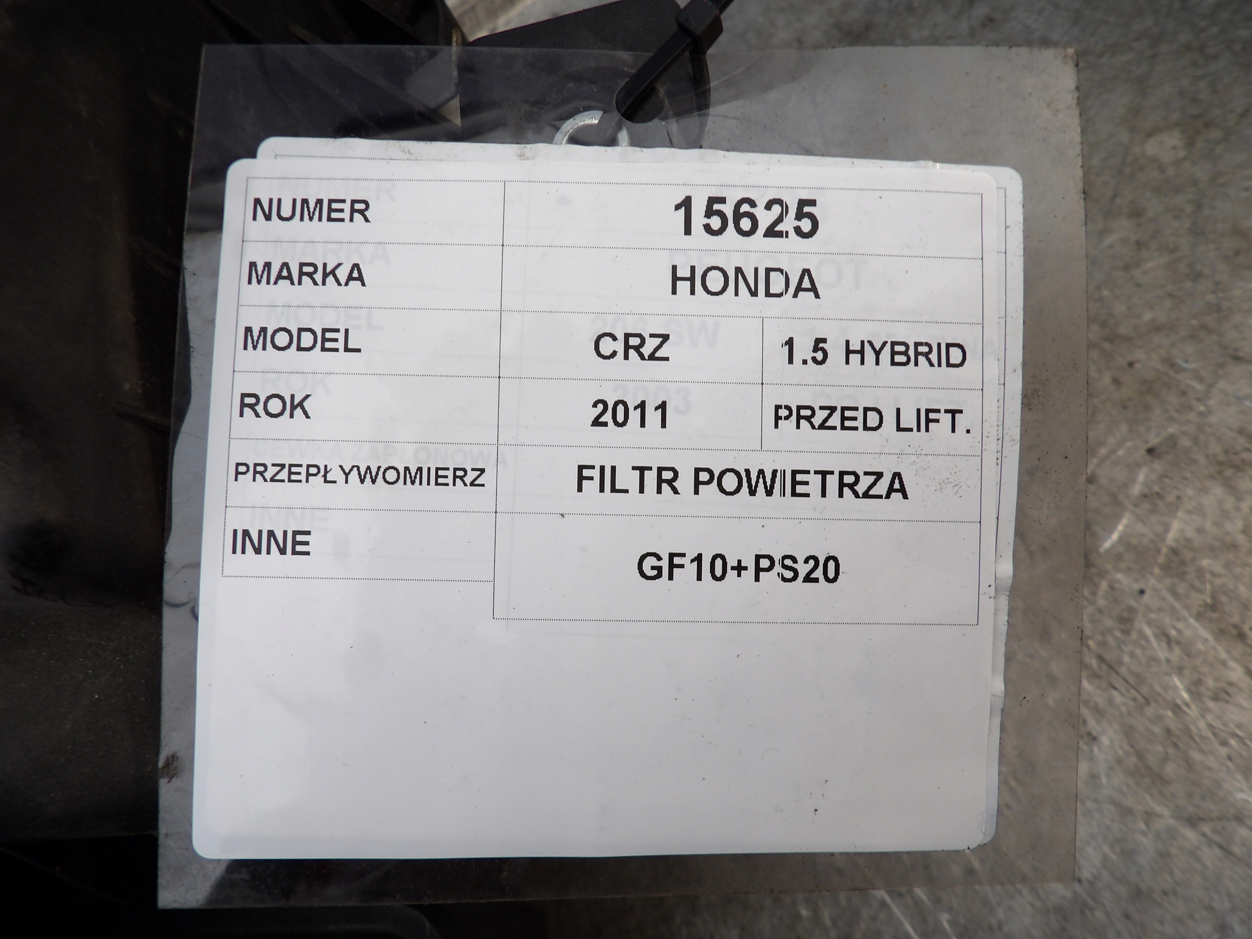 Honda CR-Z przepływomierz, filtr powietrza 1,5 Hybrid