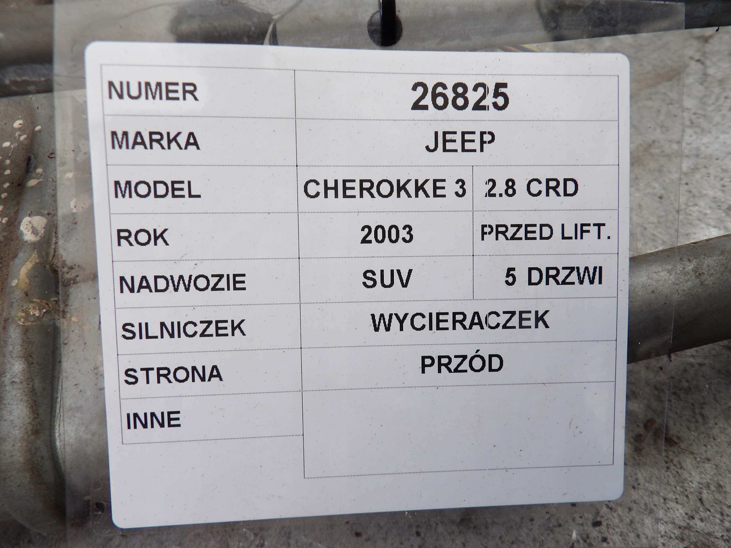 Jeep Cherokee 3 mechanizm wycieraczek przód 2,8CRD