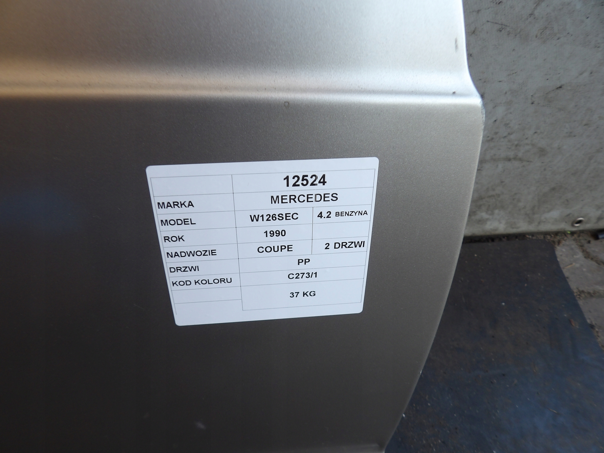 Mercedes W126 Coupe drzwi przednie prawe lak. C273/1