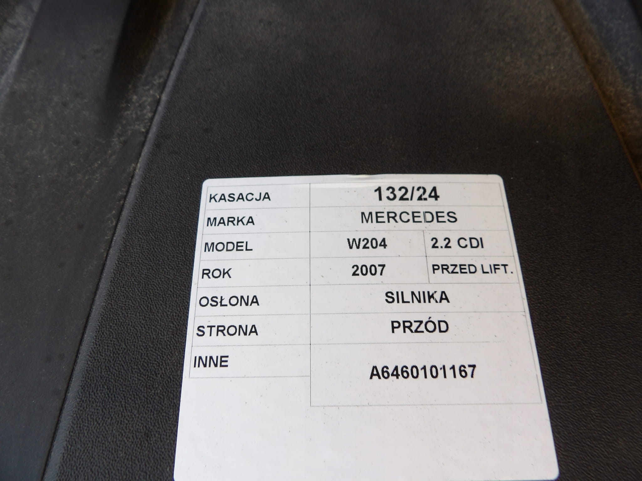 Mercedes W204 2,2 CDI osłona silnika górna A6460101167