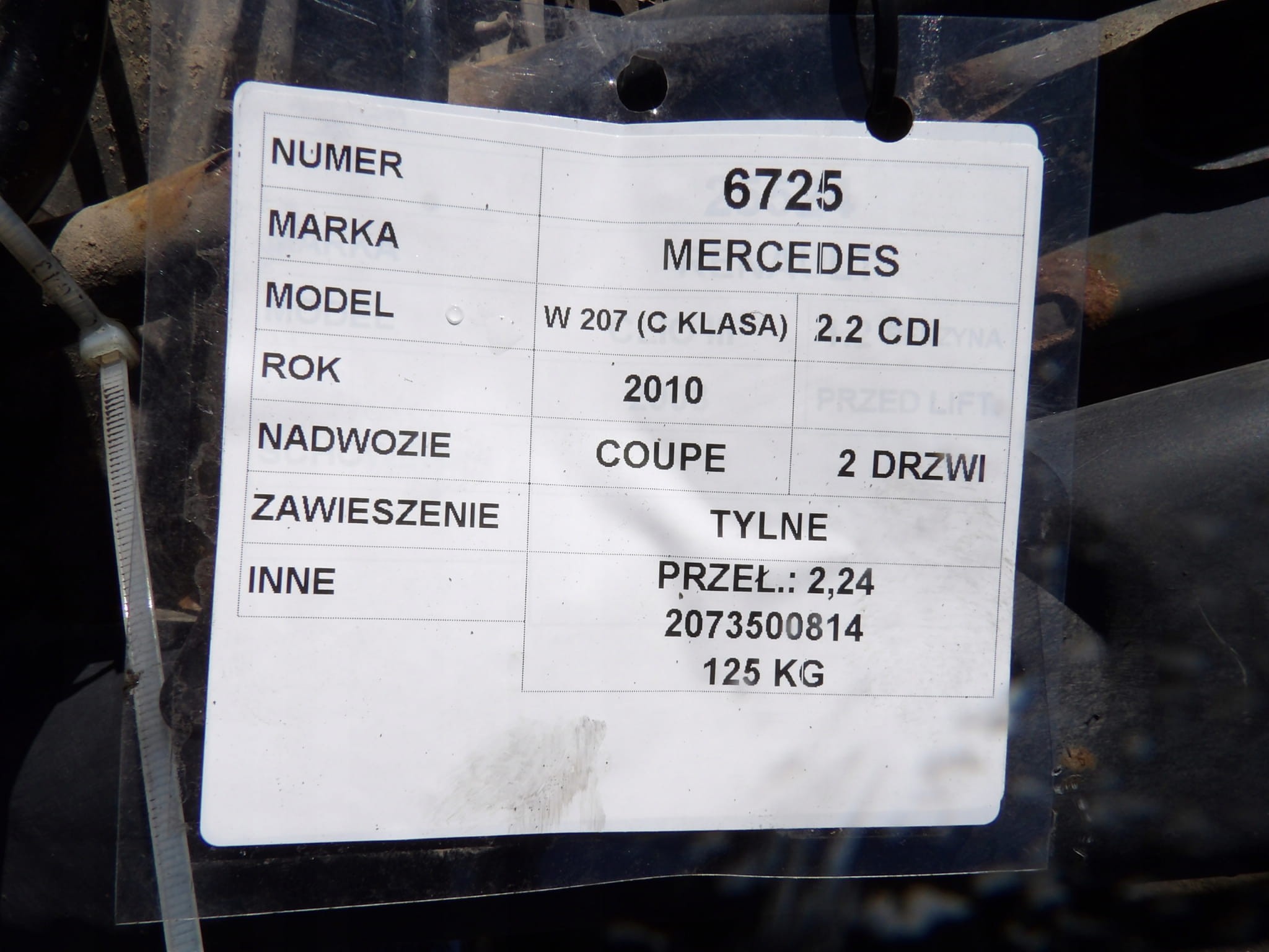 Mercedes W207 2,2CDI tylny most zawieszenie tylne kompletne 2,24 2073500814