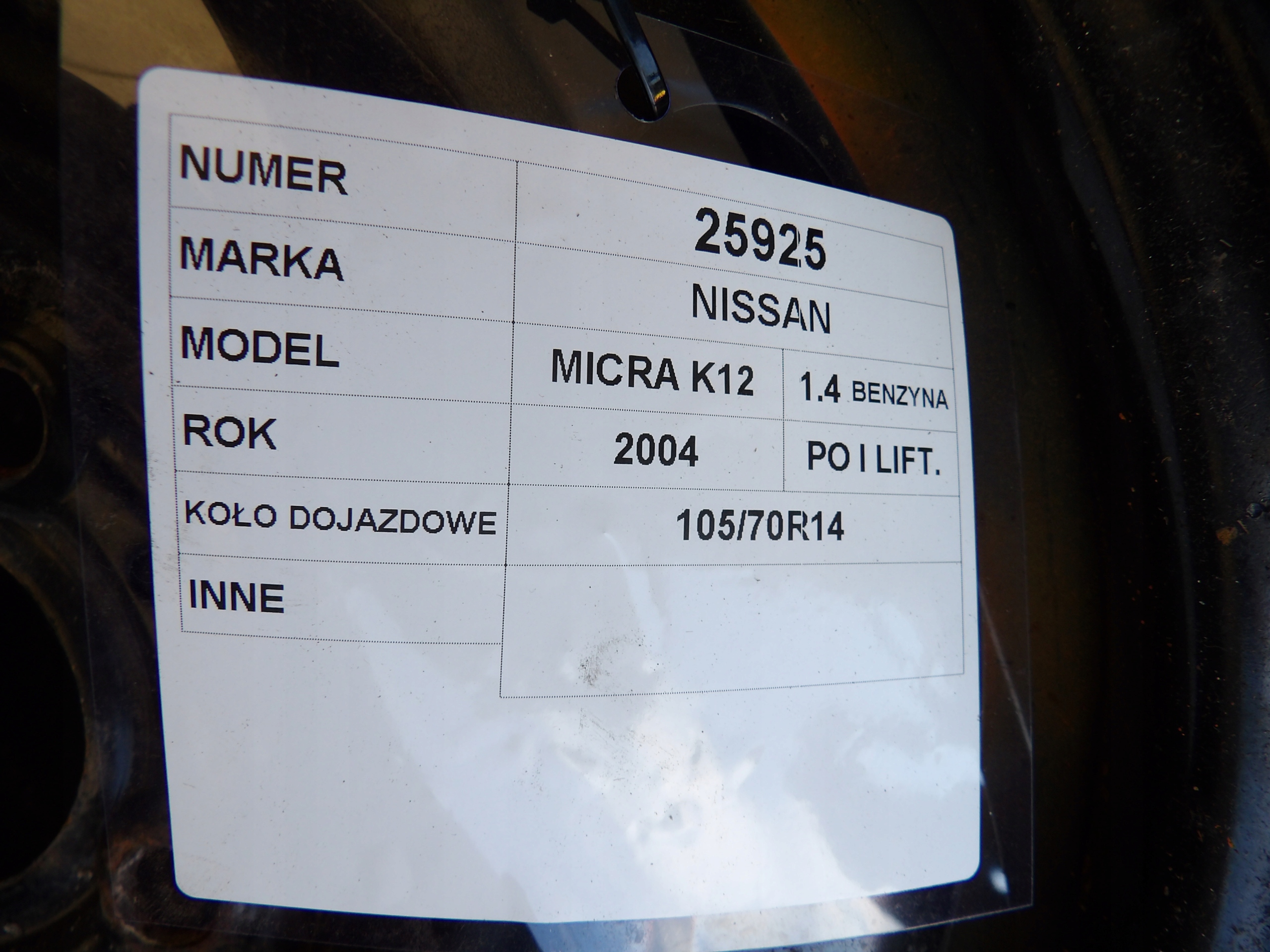 Nissan Micra K12 koło dojazdowe 14"