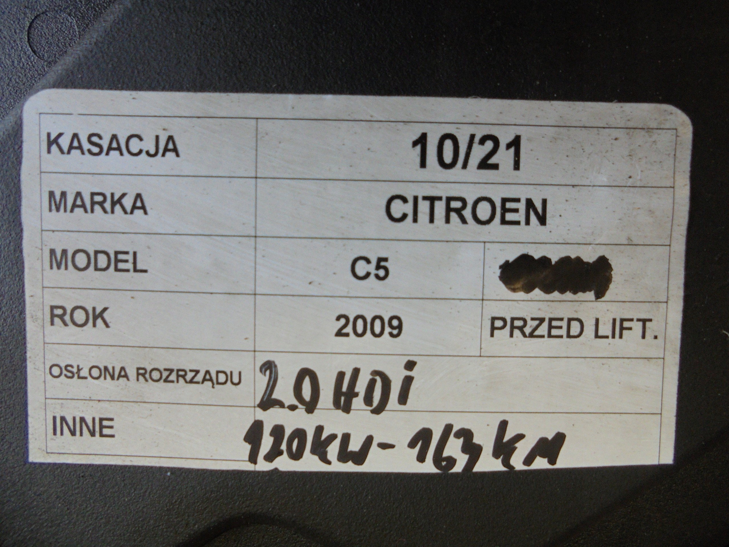Osłona rozrządu Citroen C5 II 2009 2,0hdi 120kw