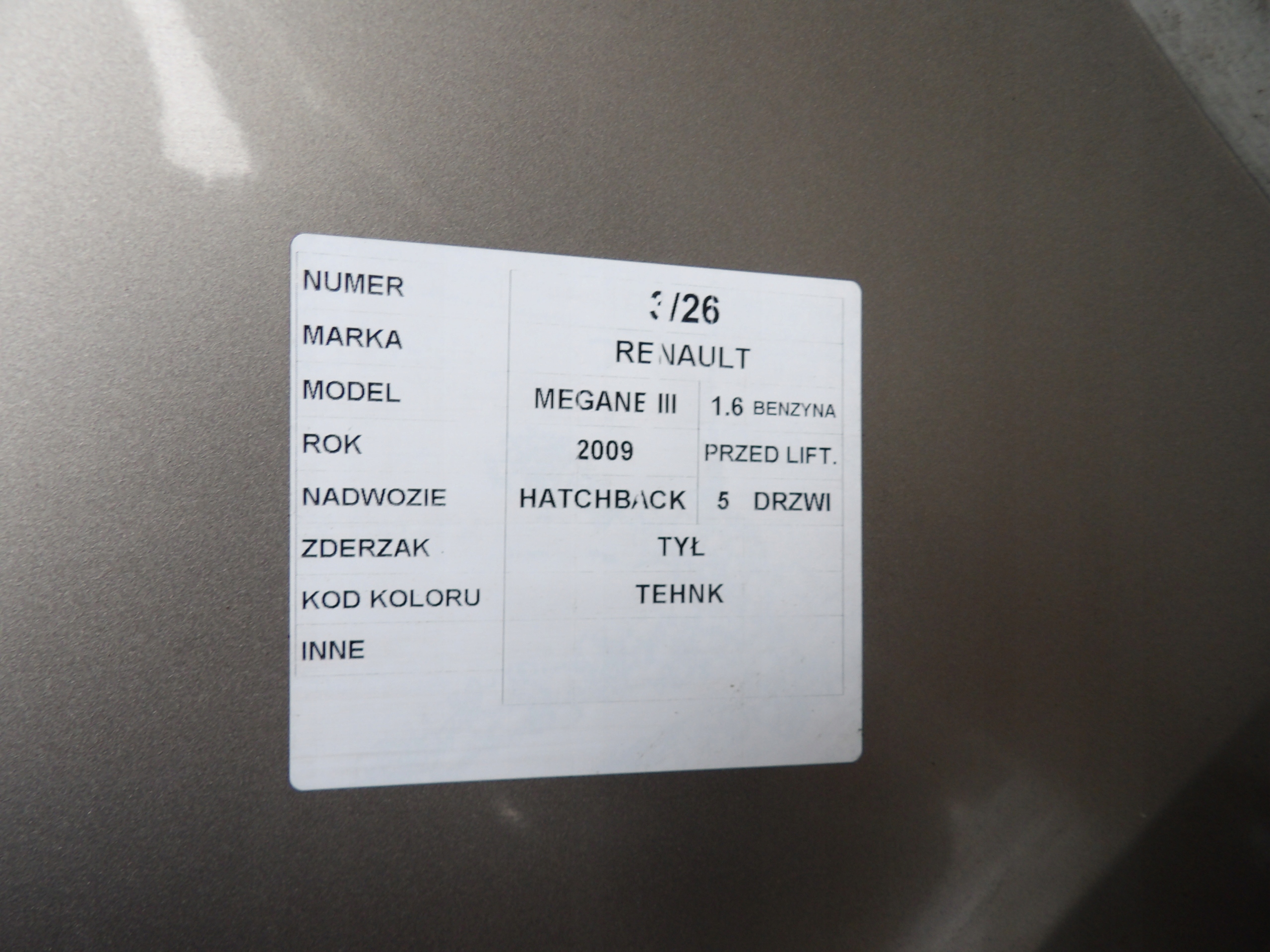 | Kod lakieru | TEGNE |