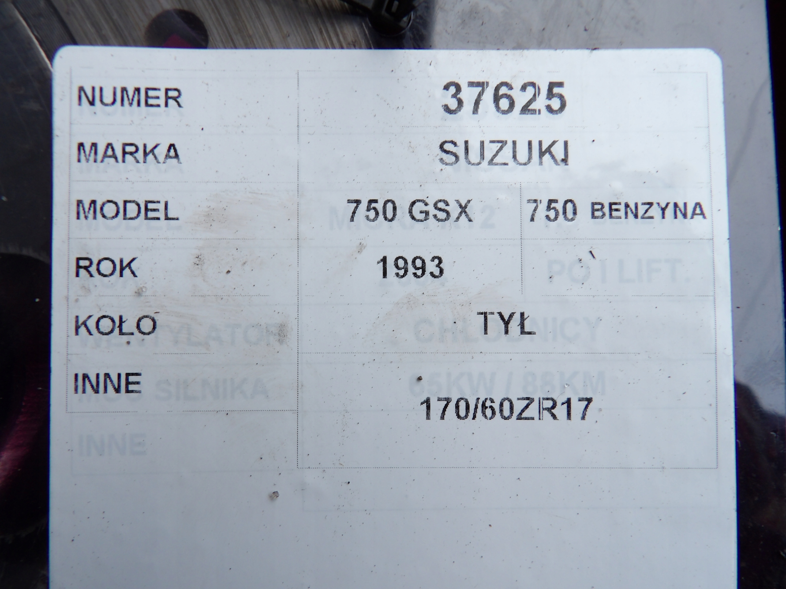 Suzuki GSX 750 koło tylne 17" 170/60ZR17
