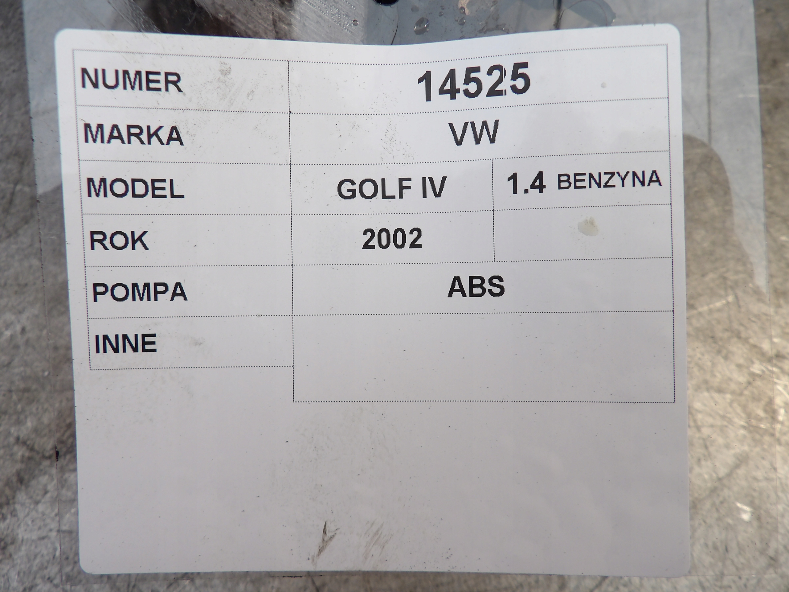 | Pojemność | 1.4 Benzyna |